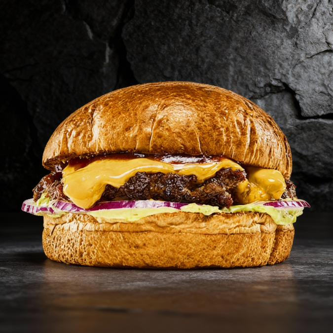 Uranus е бургер със сочна плескавица, разтапящ се чедър, лек карамелизиран вкус и сладък сос, който подчертава хармонията на съставките. Всяка хапка носи космическо удоволствие.