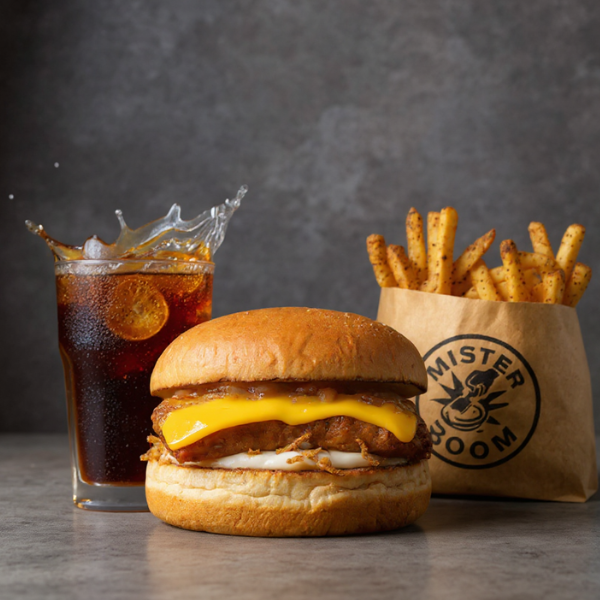 Nebula Комбо е създадено за ценителите на изискания вкус – сочен бургер с трюфелов сос, топящо се сирене и пухкава златиста питка. Всяка хапка съчетава кадифена мекота и богат аромат. Менюто се допълва от апетитни хрупкави картофки и освежаваща напитка, които превръщат това предложение в пълно удоволствие за сетивата.
